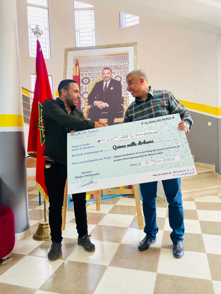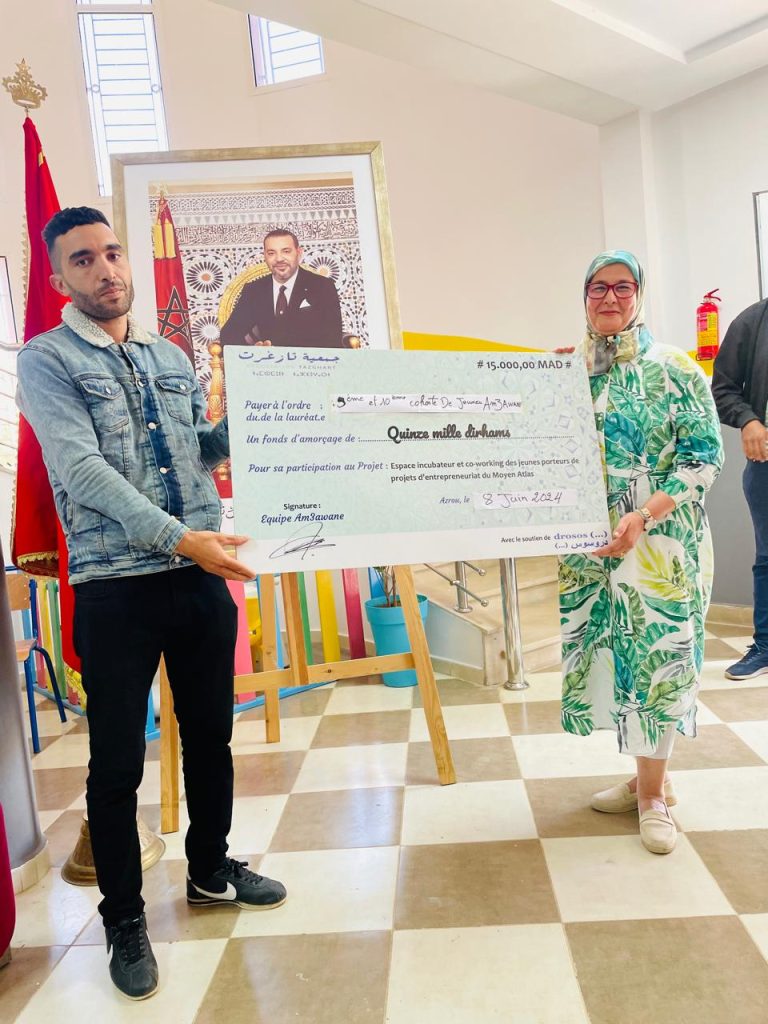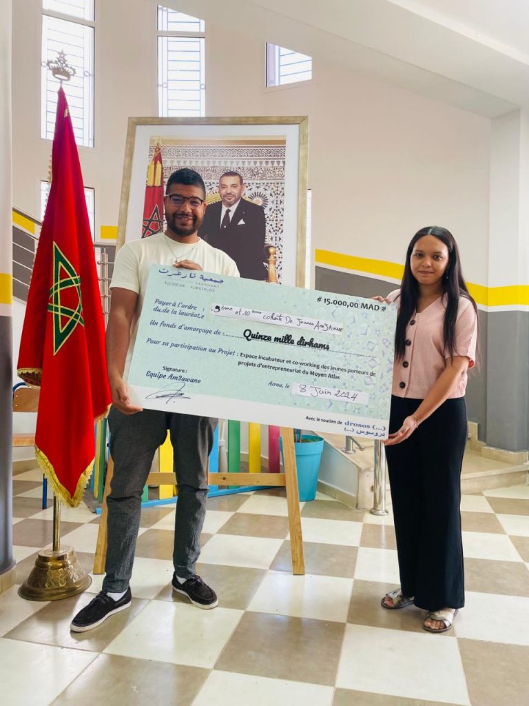 Au cœur des montagnes majestueuses du Moyen Atlas au Maroc, une célébration marquante a récemment eu lieu pour honorer le succès de 100 jeunes entrepreneurs. Ces jeunes, âgés de 18 à 35 ans, ont été les bénéficiaires d’un projet novateur-Am3awane- mis en place par l’Association Tazghart en partenariat avec la Fondation Drosos. Ce projet ambitieux a été conçu pour soutenir et promouvoir les initiatives entrepreneuriales parmi la jeunesse locale, offrant ainsi des opportunités concrètes de développement économique et social dans une région historiquement reconnue pour sa richesse culturelle et sa beauté naturelle.